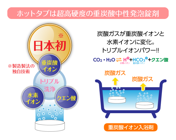 重炭酸イオン・水素イオン・クエン酸のトリプルイオンパワーで洗い流します!