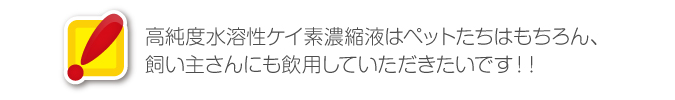 飲み水に1日1回5〜30滴(1〜5プッシュ)を入れて飲ませます。